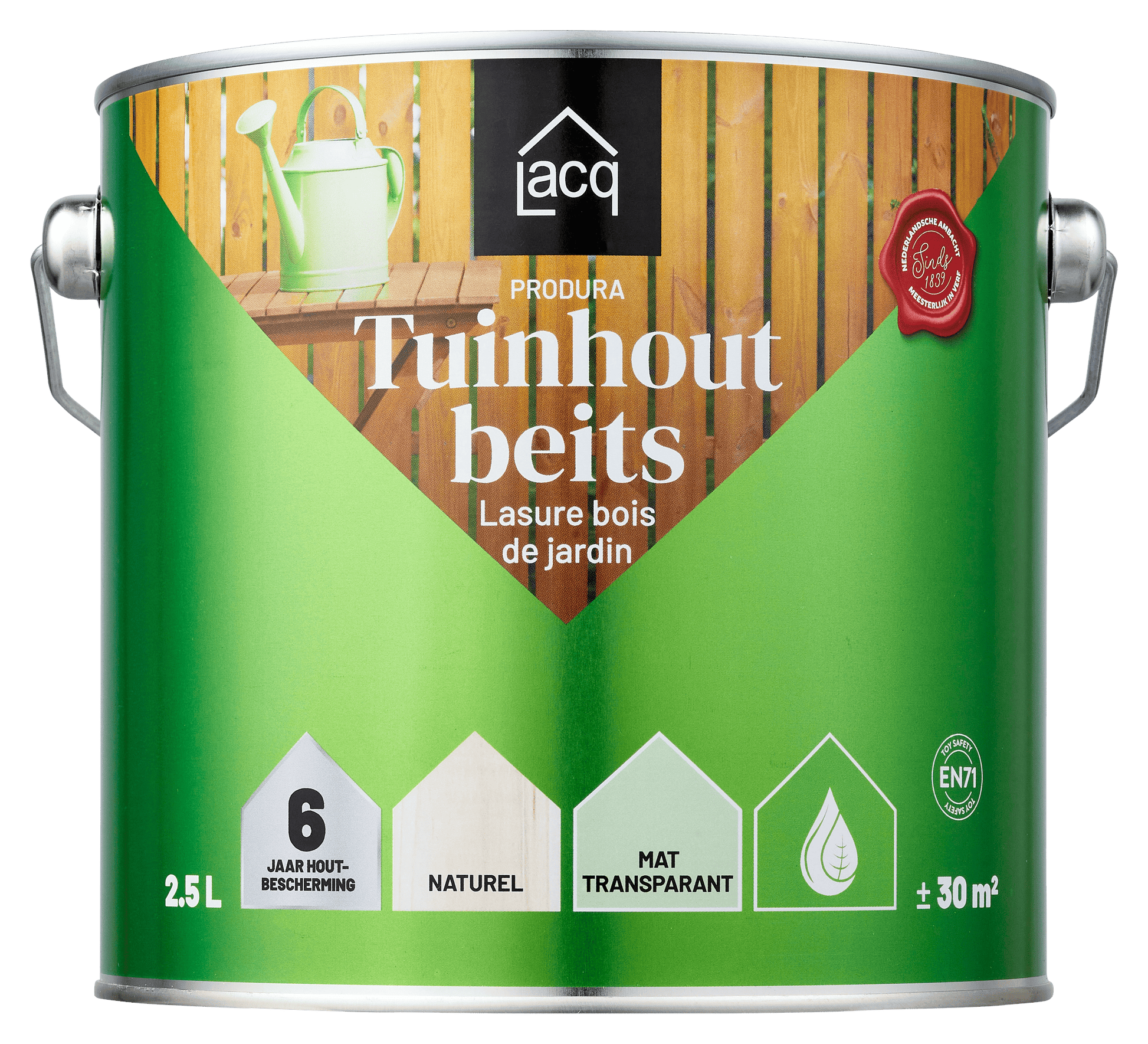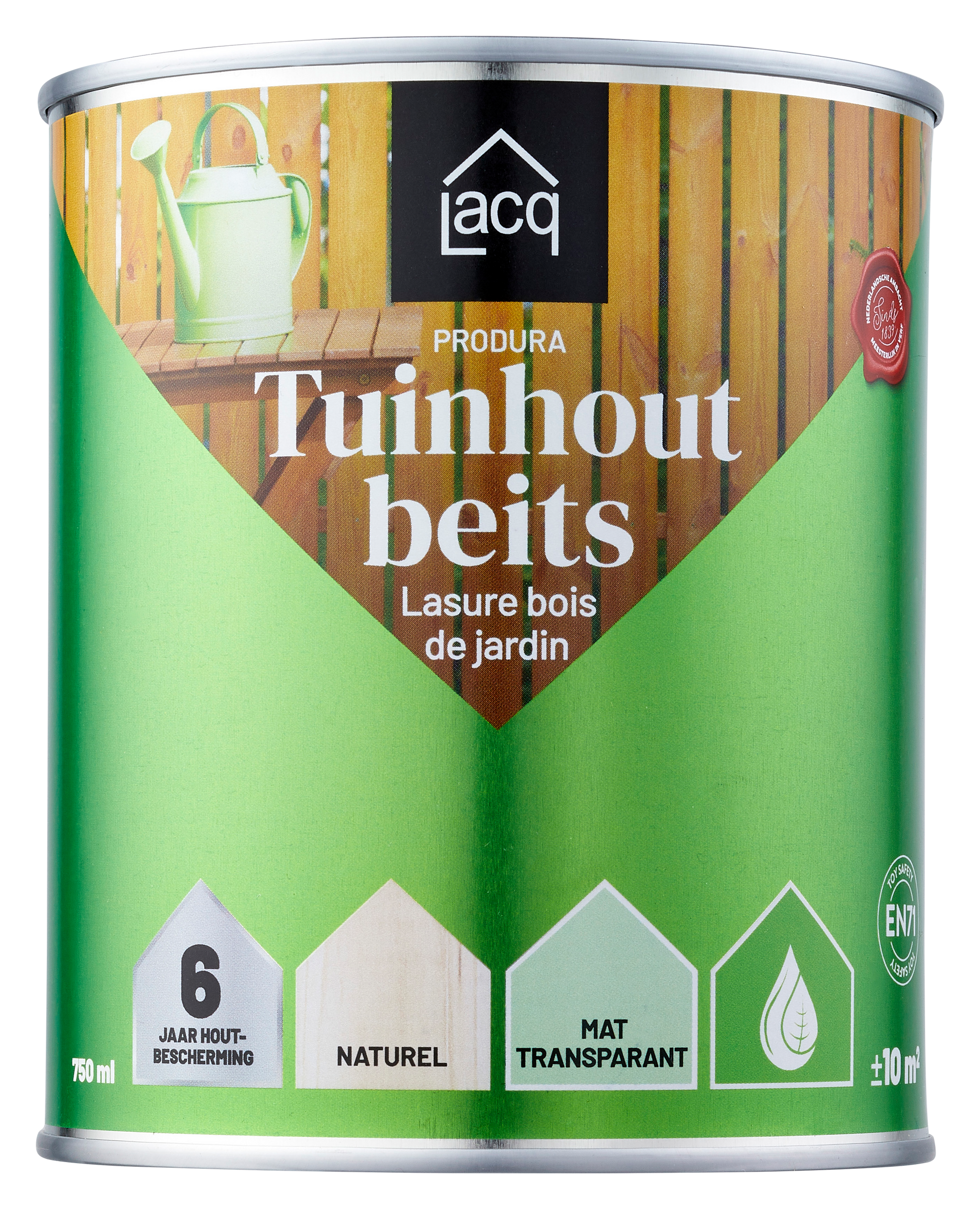 Lacq Tuinhoutbeits Transparant Naturel is een watergedragen, matte houtbeits voor duurzame bescherming van tuinhout. De beits is oplosmiddelarm, opgebouwd uit plantaardige oliën en water en beschermt houten ondergronden tot wel 6 jaar onder normale omstandigheden.