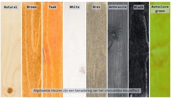 Lacq Energol is verkrijgbaar in Natural, Brown, Mahogany, White, Grey, Anthracite, Black en Autoclave Green.