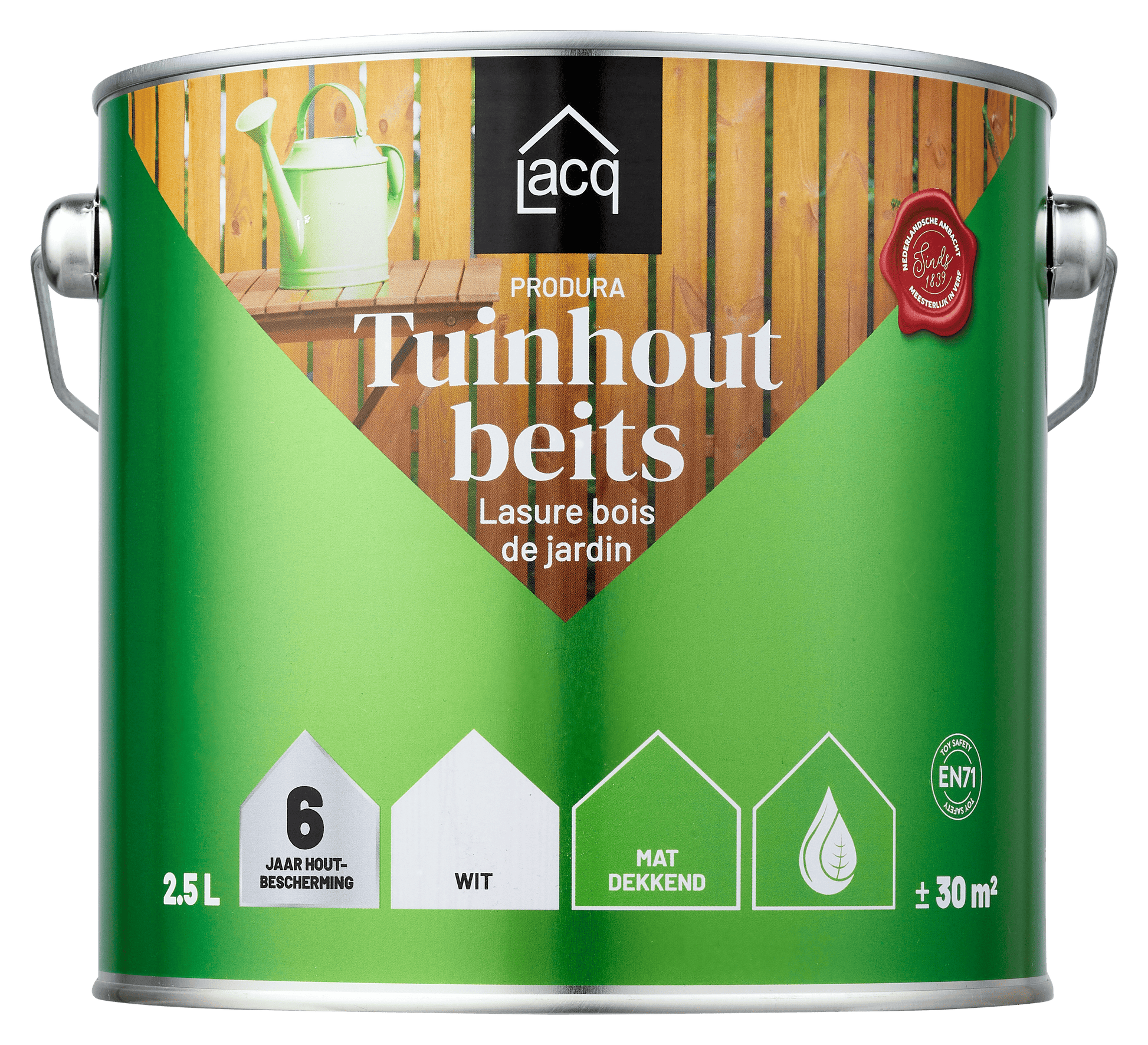 Lacq Tuinhoutbeits Dekkend Wit is een watergedragen houtbeits met matte afwerking voor duurzame bescherming van tuinhout. De beits is oplosmiddelarm, opgebouwd uit plantaardige oliën en water en vormt een flexibele, ademende beschermlaag tot wel 6 jaar.